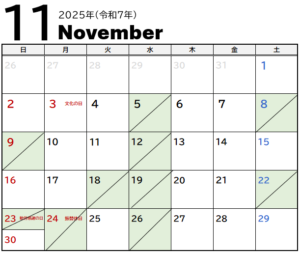 その他の不定休につきましては、こちらのHPと店頭掲示にてご案内いたします。