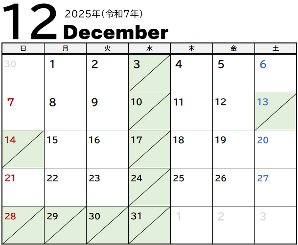 2025年12月28日(日) ~ 2026年1月4日(日)
